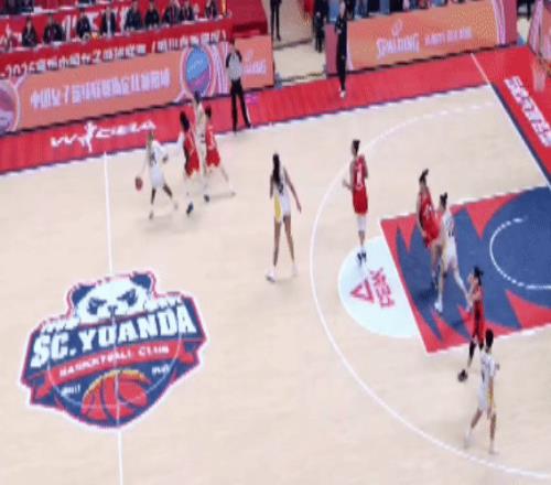 坎贝奇越打越兴奋!王思雨、李缘两位外线策应,她一条龙上篮拿分,打成2+1!